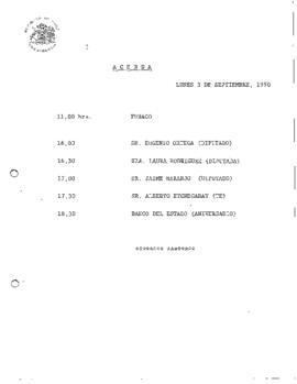 Agenda Presidencial de los días 3 y 4 de septiembre de 1990, destacando la visita del Presidente Patricio Aylwin al aniversario del Banco del Estado