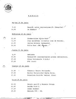 Agenda presidencial que abarca actividades entre el 19 de junio y el 29 de noviembre de 1990, incluyendo reuniones, almuerzos y visitas oficial