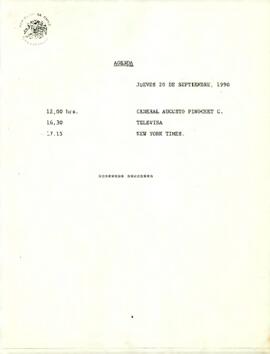 Agendas correspondientes a los días 20 y 21 de septiembre de 1990, detallando reuniones y audiencias del Presidente de la República