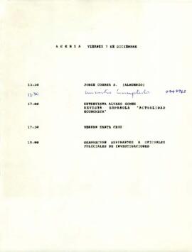 Agendas de actividades oficiales correspondientes a los días 7, 5 y 4 de diciembre y 28 de noviembre, detallando reuniones, audiencias, entrevistas, ceremonias y graduaciones con autoridades civiles, diplomáticas, policiales y judiciales