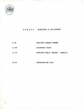 Agendas y nóminas de actividades oficiales correspondientes a octubre de 1990, incluyendo reuniones, audiencias, visitas diplomáticas, actos institucionales e inauguraciones
