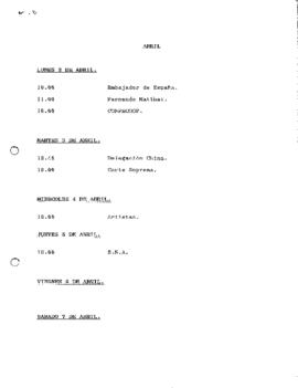 Agendas y registros de actividades oficiales realizadas entre marzo y abril de 1990
