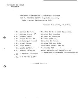 Almuerzo Presidente de la República en honor del H. diputado italiano Vincenzo Scotti [Jefe Fracción Parlamentaria D.C.]