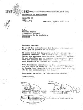 Carta de la Federación de Estudiantes de la Pontificia Universidad Católica de Chile FEUC, dirigida al Señor Marcelo Zapata Secretario Privado Presidente de la República