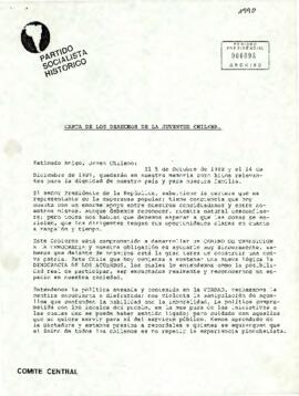 Carta de la juventud del Partido Socialista Histórico al Presidente Patricio Aylwin, llamada "Carta de los Derechos de la Juventud Chilena".sobre temas del regreso de la democracia, de la transición, temas económicos y pobreza en Chile.