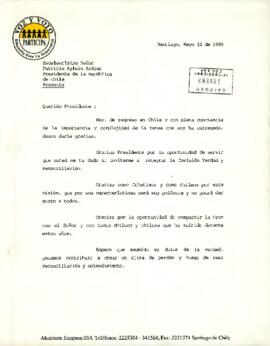 Carta de la sra. Mónica Jimenez de Barros, directora ejecutiva Participa, dirigida al Excelentísimo Señor Patricio Aylwin Azócar, Presidente de la República de Chile