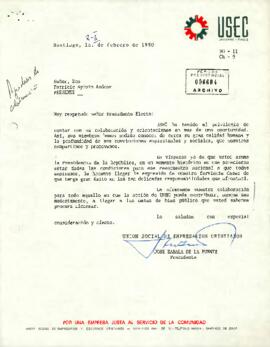 - Carta respuesta del Presidente electo de Chile, Patricio Aylwin Azócar, dirigida al Señor José Zabala de la Fuente, Presidente Union Social de Empresarios Cristianos. Santiago, marzo 5 de 1990