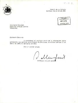 - Carta del Diputado del distrito Nº48 Edmundo Villouta Concha, dirigida al Excelentísimo señor Presidente Don Patricio Aylwin Azócar. Valparaiso, marzo 17 de 1993
