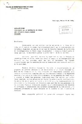 Carta del director general de la Policía de Investigaciones de Chile, sr. Horacio Toro Iturra, dirigida al Excelentísimo Presidente de la República de Chile, Don Patricio Aylwin Azócar