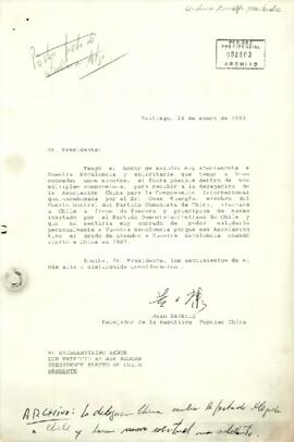 Carta del Embajador de la República Popular China, sr. Huan Shikang, al Excelentísimo Señor Don Patricio Aylwin Azócar, Presidente Electo de Chile