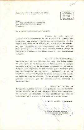 - Carta de Patricio Aylwin Azócar al Señor Claudio Fuentes Avello. Santiago, 25 de noviembre de 1991