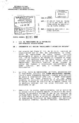 Carta del Intendente de la XII Región al Presidente de la República, en la que se solicita apoyar el traspaso del edificio del Banco Central de Punta Arenas al Poder Judicial