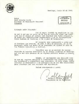 Por medio de la presente el Presidente Aylwin explica que el Gobierno no contempla dicha medida dentro de sus metas y que implicaría altos costos económicos