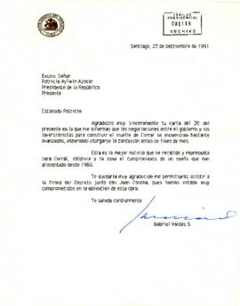 Carta del Presidente del Senado de Chile, Gabriel Valdés S., dirigida al Excmo. Señor Patricio Aylwin Azócar Presidente de la República