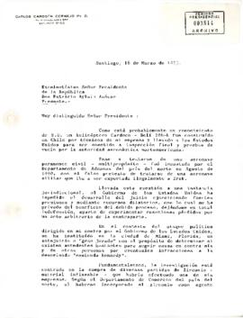 Carta del sr. Carlos Cardoen Cornejo dirigida al Excelentísimo Señor Presidente de la República Don Patricio Aylwin Azócar