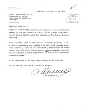 Carta del sr. José Musalem S. dirigida al Excmo. Presidente de la República de Chile, don Patricio Aylwin A.