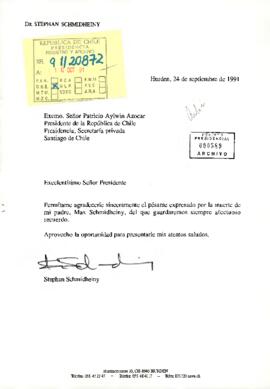 Carta del sr. Stephan Schmidheiny, dirigida al Excmo. Señor Patricio Aylwin Azocar Presidente de la República de Chile