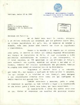 Carta desde Consejo Metropolitano del Colegio de Periodistas de Chile, de su Presidente, sr. Juan Pablo Egaña Baraona, dirigida al Señor Patricio Aylwin Azócar, Presidente de la República