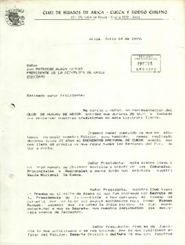 Carta desde el Club de Huasos de Arica - Cueca y Rodeo chileno, de su presidente, sr. Rómulo Ruiz Merino, dirigida al Señor Don Patricio Aylwin Azócar