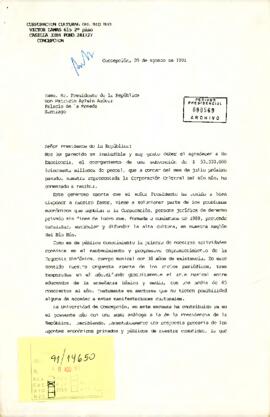 Por medio de la presente el Presidente de la Corporación Cultural del Bío Bío, agradece al Presidente Patricio Aylwin por la subvención estatal de $50.000.000 otorgada a la institución