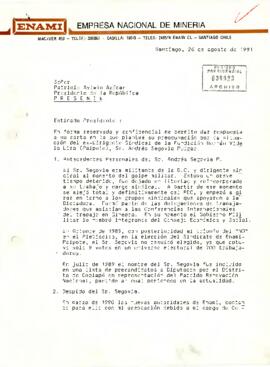 Con referencia a la la situación del ex-Dirigente Sindical de la Fundición Hernán Videla Lira (Paipote), Sr. Andrés Segovia Pulgar.