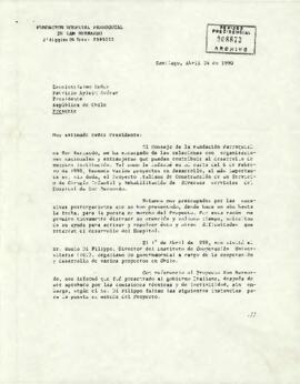 Carta desde la Fundación Hospital Parroquial de San Bernardo, de su Consejero, Dr. Juan Dubernet, dirigida al Excelentísimo Señor Patricio Aylwin Azócar Presidente República de Chile
