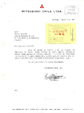 - Carta del Jefe de Gabinete, sr Carlos Bascuñán Edwards, dirigida al Señor Koji Mizuno, Presidente Mitsubishi Chile.