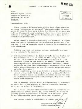 - Carta del secretario Privado del Pdte. Aylwin, sr. Marcelo Zapata C. dirigida al Señor Arturo Moreno Gerente General Banco del Estado. Santiago, marzo 21 de 1990