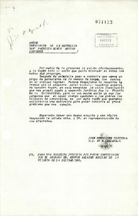 En la presente exponen que, durante el régimen anterior, fueron despojados de sus terrenos y que solo recibieron apoyo parcial de la Vicaría de la Solidaridad. Ante la persistencia de sus problemas, solicitan una audiencia para presentar personalmente su situación. La carta está firmada por José Henríquez Figueroa, quien representa a los afectados
