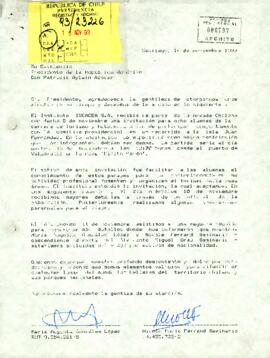 • Carta de Carlos Bascuñán Edwards, Jefe de Gabinete, dirigida a las Señoras María Augusta González López,
