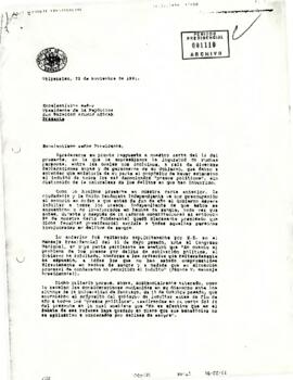 Carta enviada al Presidente Patricio Aylwin por representantes de la Unión Demócrata Independiente, en la que expresan preocupación por eventuales indultos a personas condenadas por delitos asociados a hechos de sangre