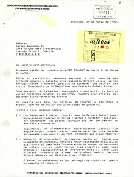 - Carta desde la Presidencia de la República, dirigida a los Señores Confederación de Sindicatos de Trabajadores de Empresas Bancarias. Santiago, 11 de marzo de 1993