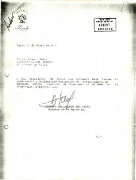 Carta enviada desde Lima por el senador peruano Armando Villanueva del Campo al Presidente Patricio Aylwin