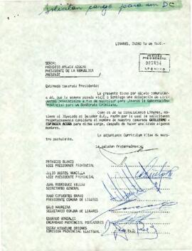 Carta enviada por dirigentes provinciales y comunales del Partido Demócrata Cristiano de Linares al Presidente electo Patricio Aylwin
