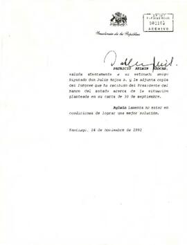 El Presidente Aylwin expresa que no es posible ofrecer una mejor solución a la situación planteada