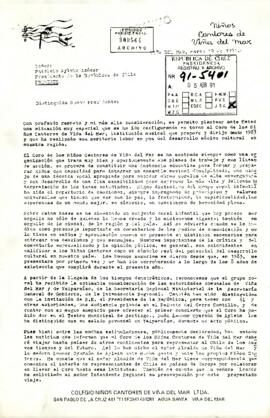 Carta enviada por Jorge Bonilla Vera, director artístico del Coro de los Niños Cantores de Viña del Mar, al Presidente Patricio Aylwin