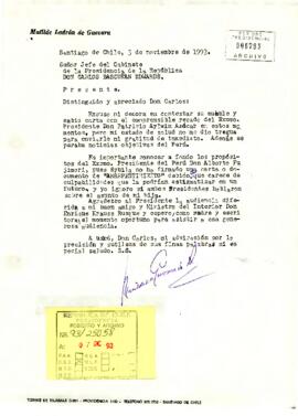 Documento 95-9-18 - Carta enviada por Matilde Ladrón de Guevara al Jefe de Gabinete de la Presidencia, Carlos Bascuñán Edwards