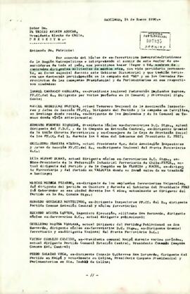 Carta extensa enviada al Presidente electo Patricio Aylwin por el Núcleo de ex-ferroviarios Demócrata Cristianos de la Región Metropolitana