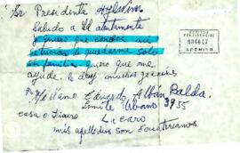 El infrascrito solicita ayuda al Presidente ya que se encuentra en una situación precaria
