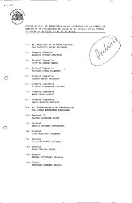 Contiene una lista detallada de los asistentes, incluidos ministros, el General Director y generales de Carabineros, así como anotaciones complementarias sobre actividades y disposiciones logísticas relacionadas con el programa oficial
