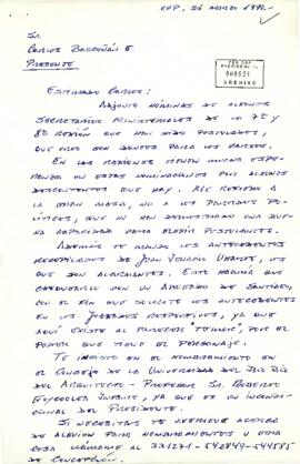 Correspondencia y antecedentes enviados a Carlos Bascuñán sobre nominaciones para cargos de Secretarios Ministeriales de la 7ª y 8ª Región