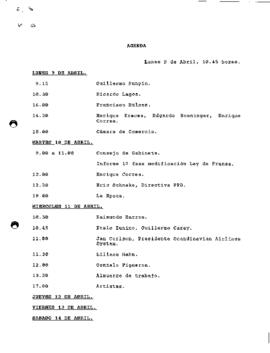 Documento que reúne diversas agendas oficiales del mes de abril de 1990 detallando reuniones, actividades, ceremonias y encuentros del Presidente de la República