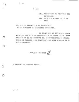 Fax del Jefe de Gabinete de la Presidencia dirigido al sr. Ministro de Relaciones Exteriores