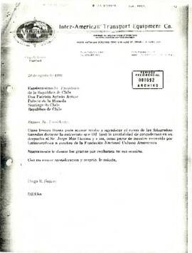 Fax enviado por Diego R. Suárez, Presidente de Inter-American Transport Equipment Co., dirigida al Presidente Patricio Aylwin