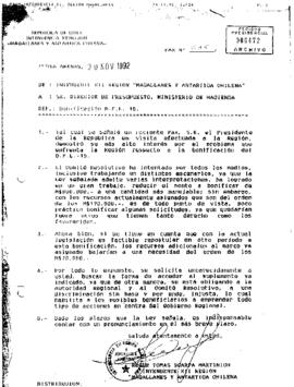 Fax [Nº535] enviado por el Intendente de la XII Región de Magallanes y Antártica Chilena al Director de Presupuestos del Ministerio de Hacienda, solicitando recursos adicionales para la bonificación establecida en el D.F.L. N.º 15