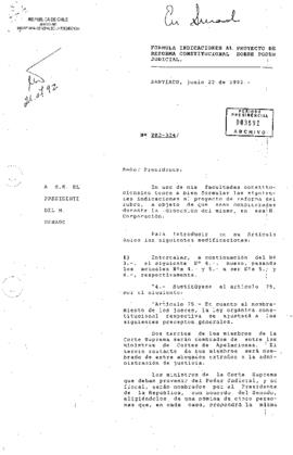 El documento expone la iniciativa del Presidente Patricio Aylwin para reformar la Constitución con el fin de fortalecer la independencia y eficacia del Poder Judicial.