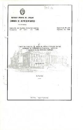 - Información referida al contexto bajo el cual se recomienda designar una Comisión Especial compuesta por integrantes de todos los Partidos pertenecientes a la Cámara, con el fin de apoyar al pueblo de la República de Chile en su afán por recuperar la democracia, la libertad, la justicia y el respeto a los Derechos Humanos.