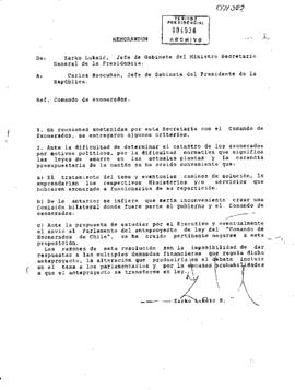 Memorándum, del Sr. Zarko Luksic, Jefe de Gabinete del Ministro Secretario General de la Presidencia, dirigido a Carlos Bascuñán, Jefe de Gabinete del Presidente de la República