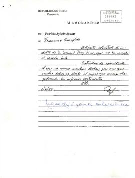 - Nota de Patricio Aylwin Azócar al Senador Anselmo Sule, informando que ha enviado los antecedentes del sr. Ismael Díaz Pino al ministro de Justicia. Santiago, 1 de febrero de 1994