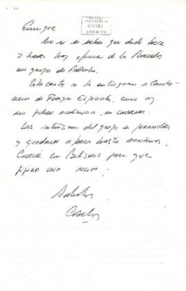 Nota manuscrita enviada a Enrique informando que afuera del Palacio de La Moneda se halla un grupo de Mapuches con una carta para entregarle al Presidente